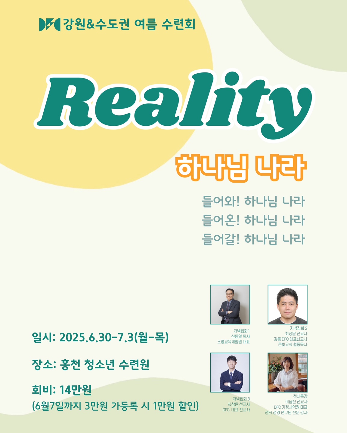 강사 : 신동열 목사, 최창완 선교사, 최성윤 선교사, 이남신 선교사